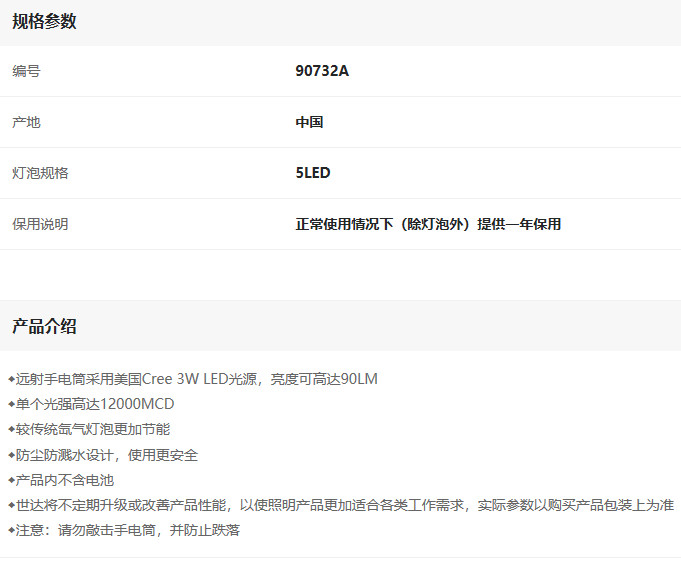 產(chǎn)品名字:世達(dá)鋁合金手電筒2節(jié)5號電池