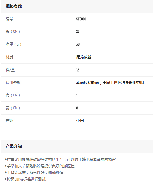 產(chǎn)品名字:世達抗靜電手套(大掌浸)8"