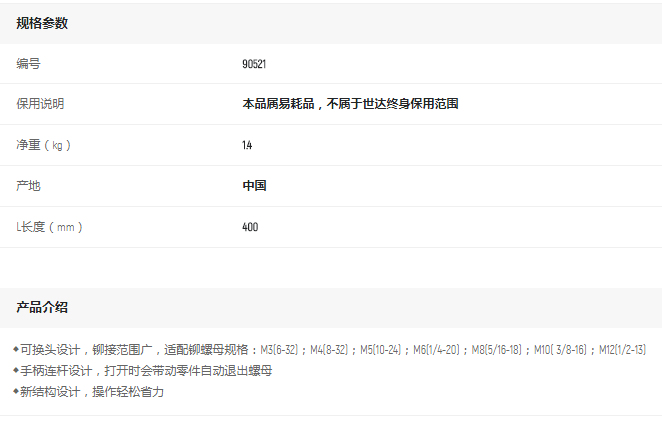 產(chǎn)品名字:世達手動鉚螺母槍